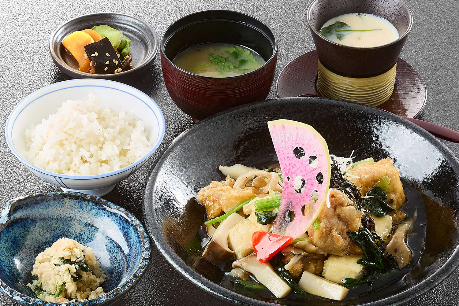 ③岡山森林鶏と白神豆腐の揚げ出し餡かけ