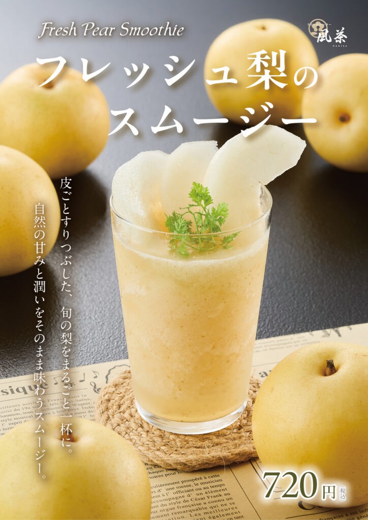 ドリンクパーラー凪茶では、11/1より「フレッシュ梨のスムージー」を販売いたします。
