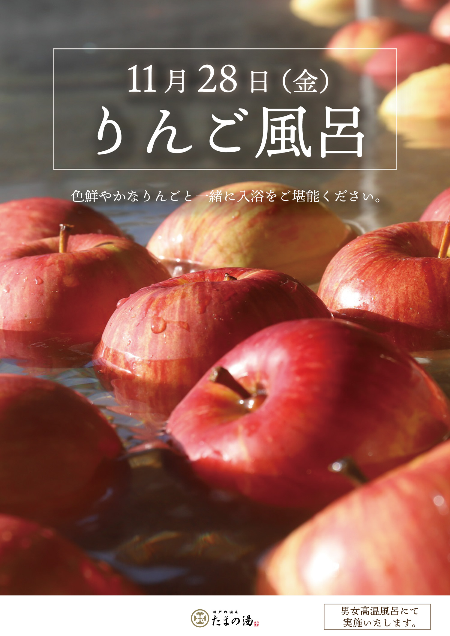 11月は、りんご風呂を男女高温風呂にて開催いたします。(※漢方生薬泉はお休みいたします。)