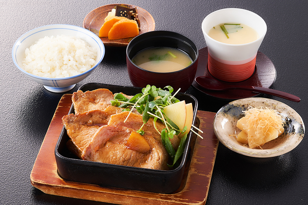 ③鷹取醬油を使った豚ロースりんご生姜焼き御膳