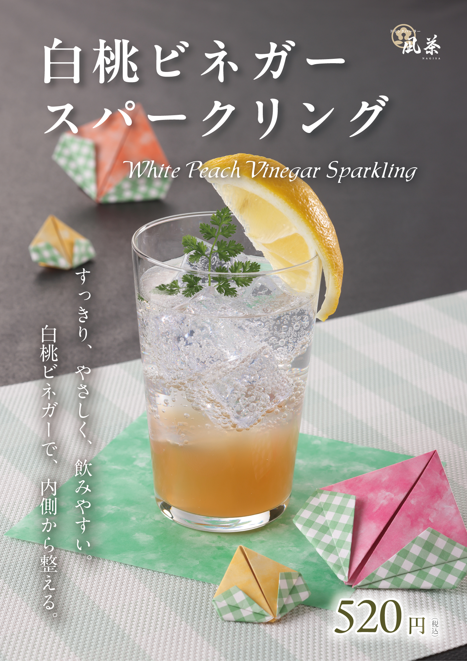 2/1(日)~凪茶にて、白桃ビネガースパークリングを販売いたします。
