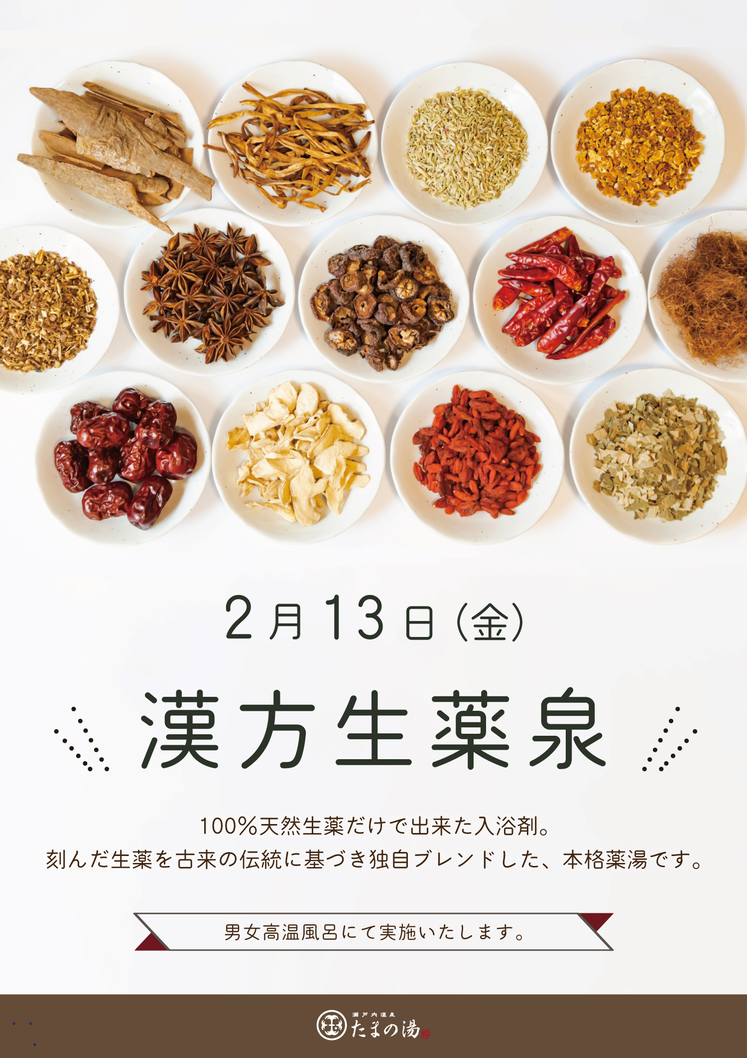 2月13日(金)は、漢方生薬泉を開催いたします。
