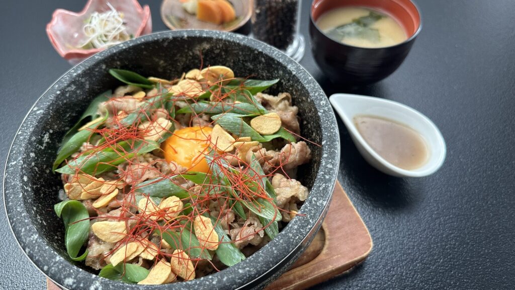 肉料理との相性がいいので、海廊のおすすめペアリングは「サウナ飯:石焼きガーリックライス&たっぷり牛肉」です。