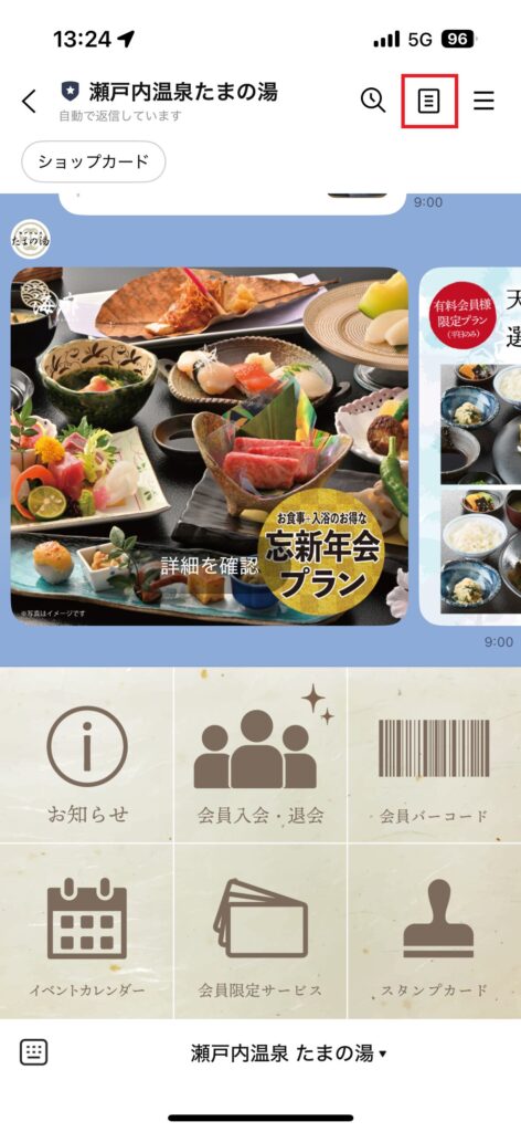- たまの湯のLINEトーク画面を開く