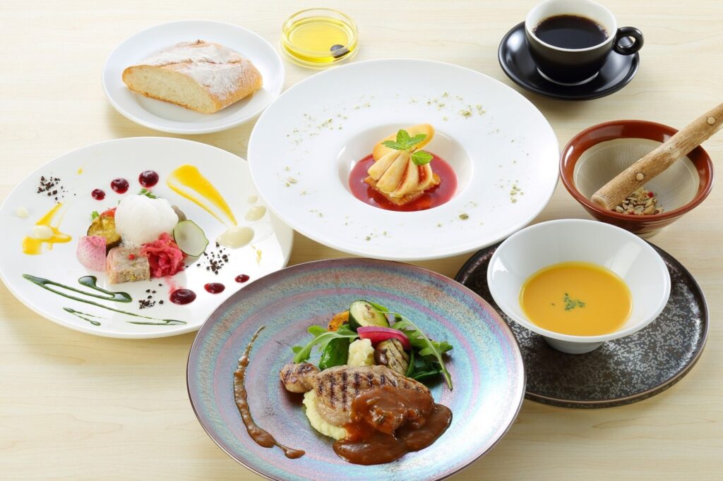 瀬戸内レストラン BLUNO(UNO HOTEL)で地元の旬食材を使った「アンシャンテコース」をお楽しみいただいた後、たまの湯でくつろぎのひとときを過ごせる、お得なセットプランをご用意しました。