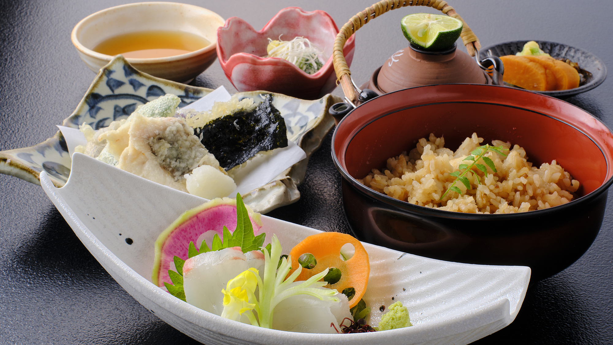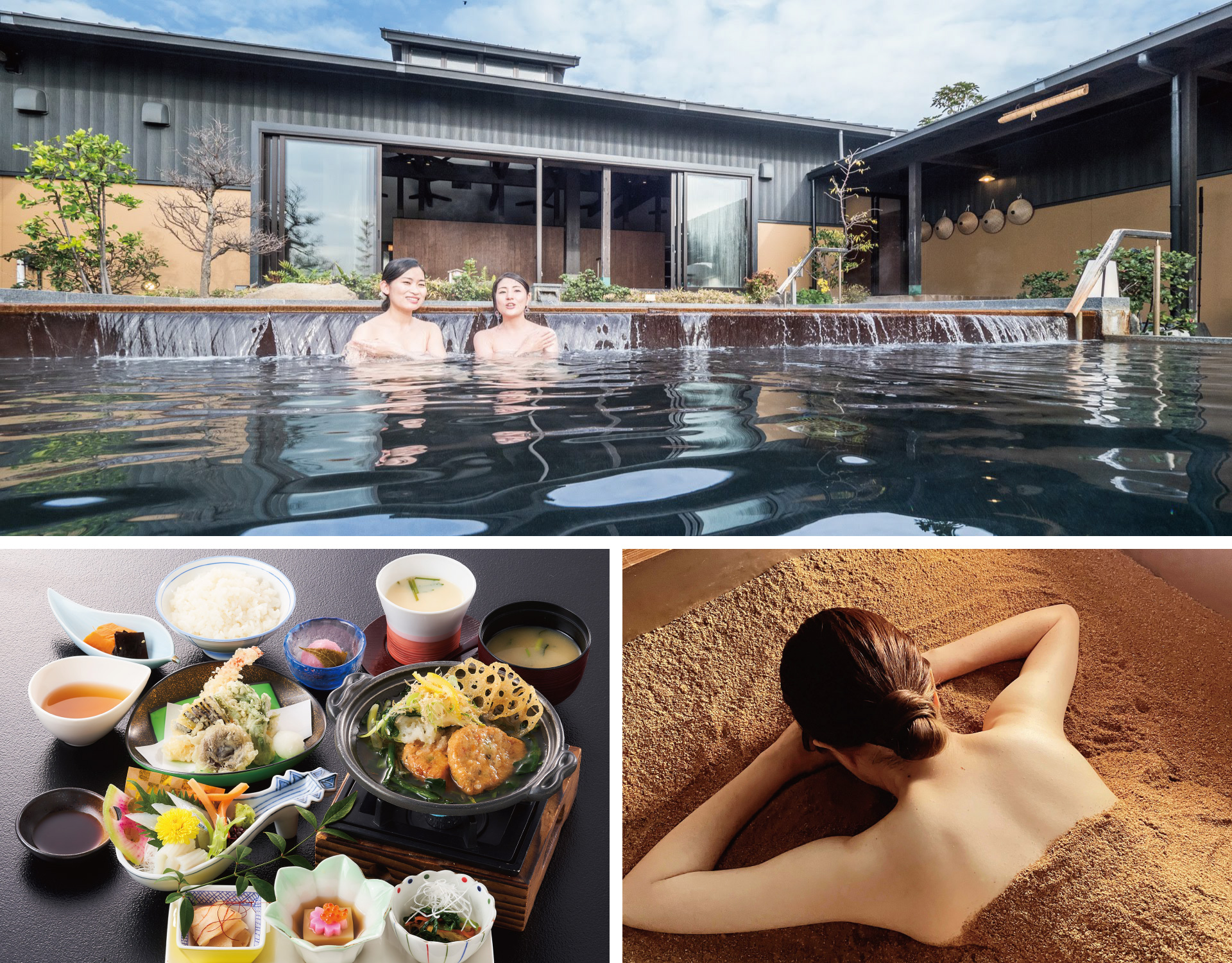 海を望む露天風呂に浸かり、旬の味覚を味わい、心と身体を整える一日。